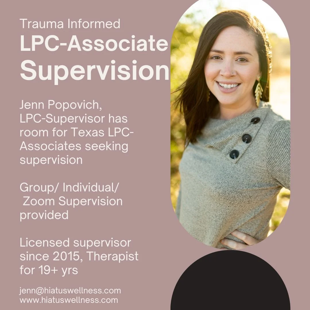 This course meets all requirements for LPC’s in Texas to become board approved supervisors. You must have been an LPC for 5 years to apply for supervisor status, but can take a supervisor course at 3 years post independent license. Your license number will be required to confirm your eligibility. This course offers original content created by Jenn Popovich, LPCS. This course covers concepts necessary for supervising counselor associates seeking independent licensure in Texas, with a focus on Narrative Theory based supervision.